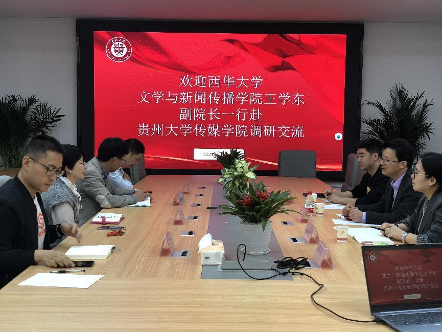 唐娟副院长代表学院对西华大学文学与新闻传播学院的来访表示热烈欢迎,并介绍了贵州大学传媒学院的相关情况。新闻系主任张波围绕研究生联合培养基地与行业导师管理、研究生教学成果奖的探索与挑战、研究生教学培养体系的构建、研究生教材开发以及研究生学科竞赛组织等议题做了经验分享。副处级组织员赵栋昌和研究生辅导员张健介绍了我院研究生管理方面的有关情况。