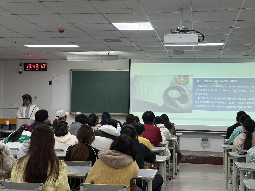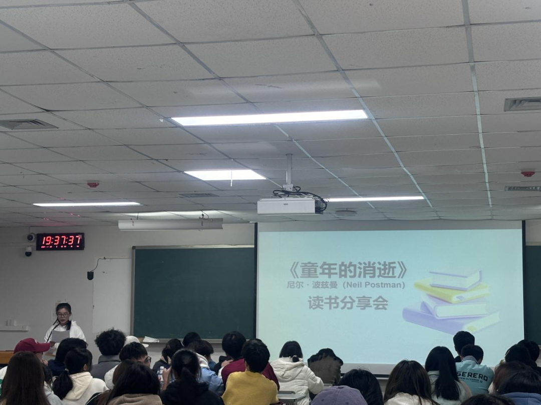 贵州大学2024级新闻专业读书分享会于2024年11月22日在南校区信息楼举行。本次活动以“教育担当筑新梦,党史铭心谱新篇”为主题,围绕《童年的消逝》一书展开积极讨论,新闻系教师吴妍、高焕静参加活动。