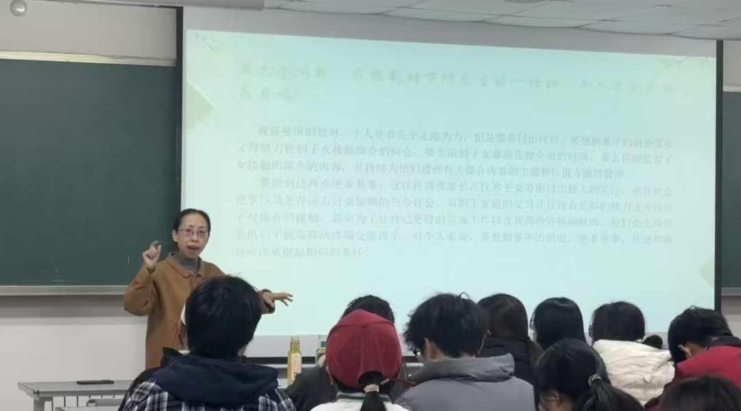 同学们紧扣书中新媒体对童年概念的冲击这一核心要点,深入剖析了信息传播对儿童成长环境带来的的改变。新闻2401班王靖雯在分享关于 “童年与成年界限模糊化”的章节时提到,在新媒体环境下,儿童过早接触成人世界的信息,会导致童年时期本应具有的纯真与独特性逐渐消逝,这不仅影响着儿童的心理发展,还给整个社会的教育体系带来了新的挑战。