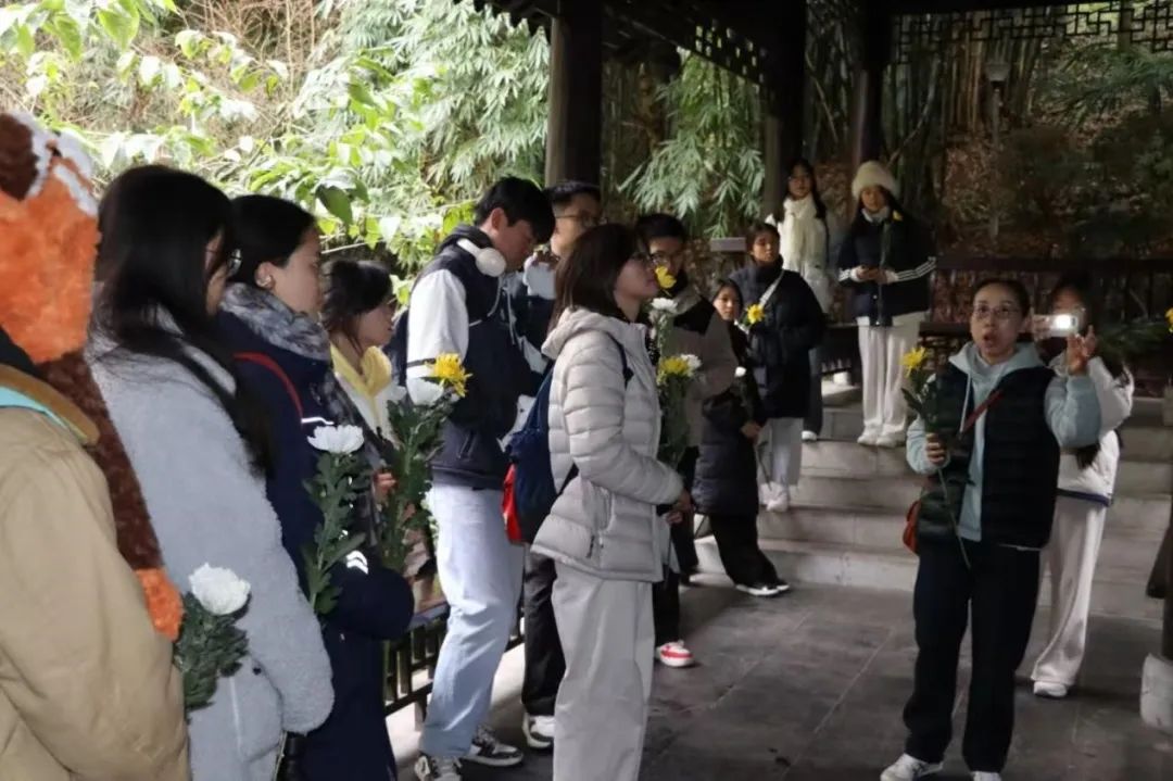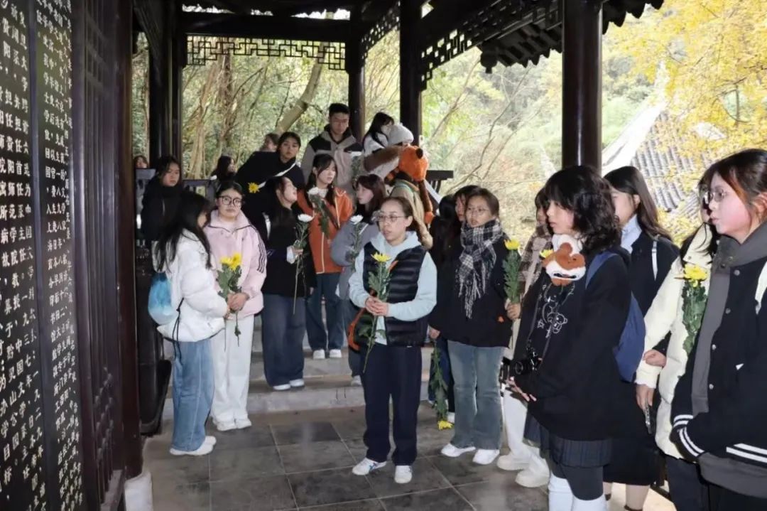 学生李亚虹在课后表示:“参观谢六逸先生故地,我深感其生平是历史记忆,更是精神传承。作为新时代的新闻学子,我誓将求真务实,做合格新闻人。此行是心灵洗礼,更坚定了我的信念与追求”。留学生刘鹏道说:“在墓旁,我静静地聆听着老师的讲解,深刻感受到了新闻事业对社会发展的巨大推动”。