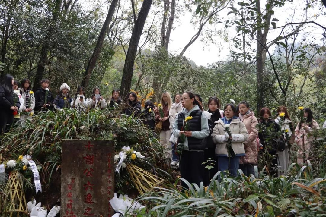 跟随吴妍的脚步,同学们参观了位于关刀岩的谢六逸先生墓地。